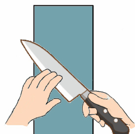 | 8、 | 刃は4ヵ所に分けて研いでください。 刃全体を一度に研ぐのではなく、刃元から切っ先まで4ヶ所に分け、順次位置をずらしながら研ぐと良いでしょう。